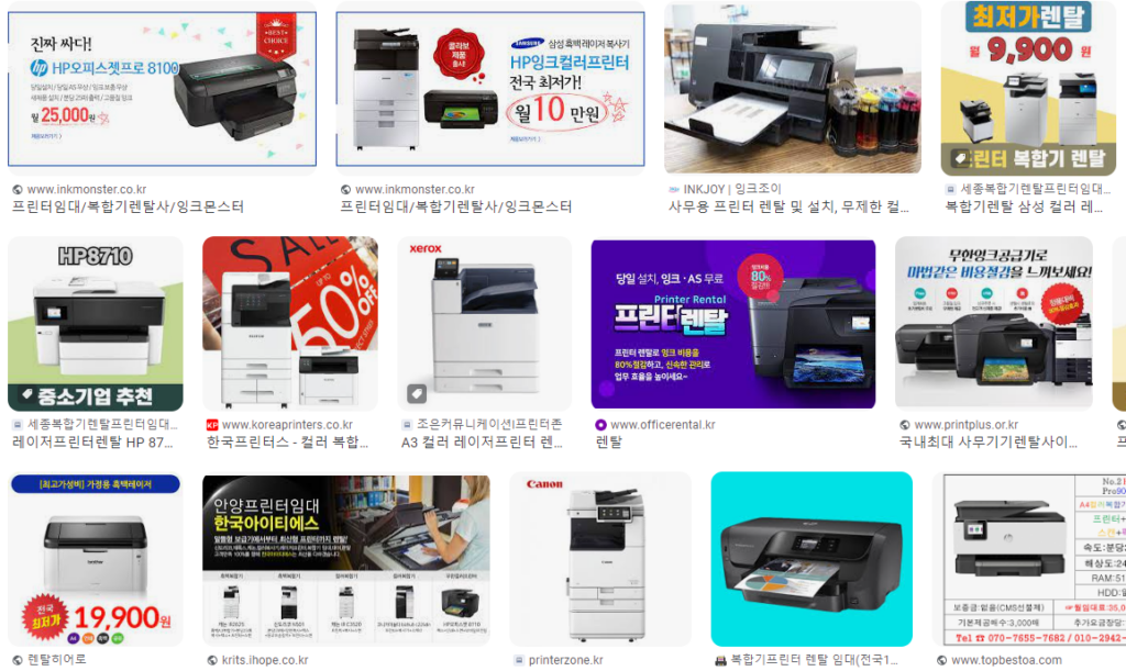 프린터 및 복합기 렌탈을 해주는 업체는 많이 있습니다. 하지만 제조사 자체적으로 렌탈 서비스를 진행해주는 곳도 있는데요 아무래도 제조사에서 직접 서비스하는 프린터 렌탈이기 때문에 AS와 같은 측면에서는 유리할 수 있습니다. 하지만 가격적으로는 일반적인 렌탈 업체보다 비쌀 수 있으니 충분히 비교하고 프린터 / 복합기 렌탈을 진행하시길 바랍니다.